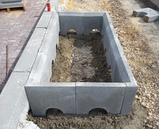 של אקרשטיין בשילוב תעלת גידול המשכית, מהווה פתרון איכותי לנטיעת עצים ברחובות עירוניים.