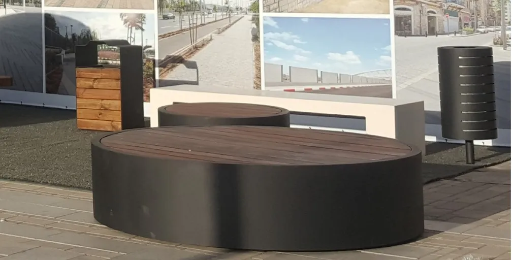 אשפתון קולורדו מעץ ואשפתון דקוטה גמר פח שחור בשילוב במה עגולה גמייקה