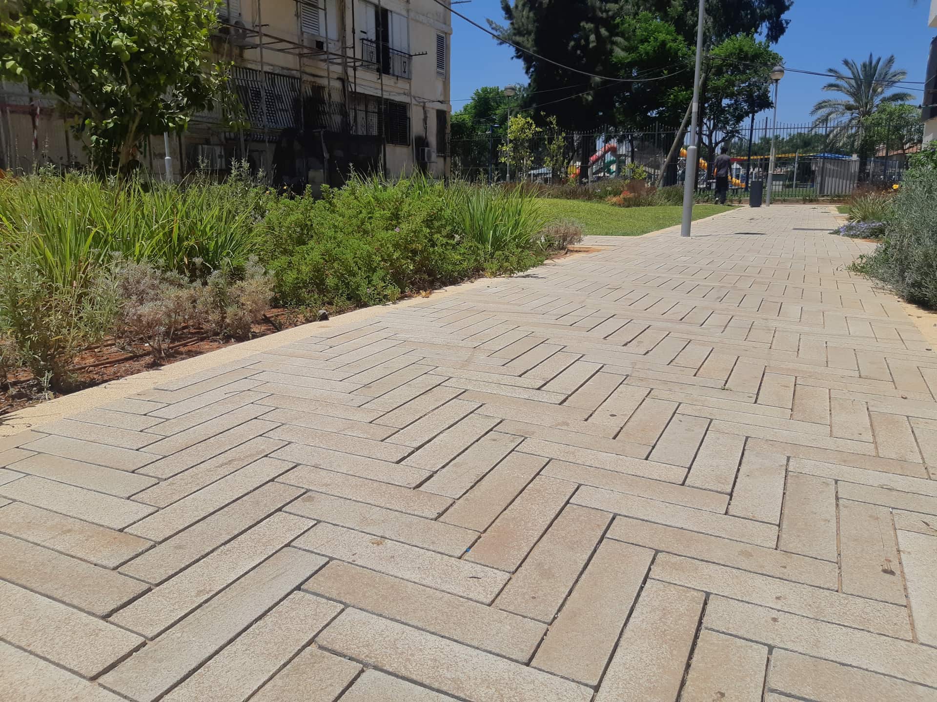 ריצוף באבנים משתלבות בפורמטים קטנים יחסית מתאים למדרכות עירוניות בזכות עמידות גבוהה ואפשרות למעבר אקראי של כלי רכב